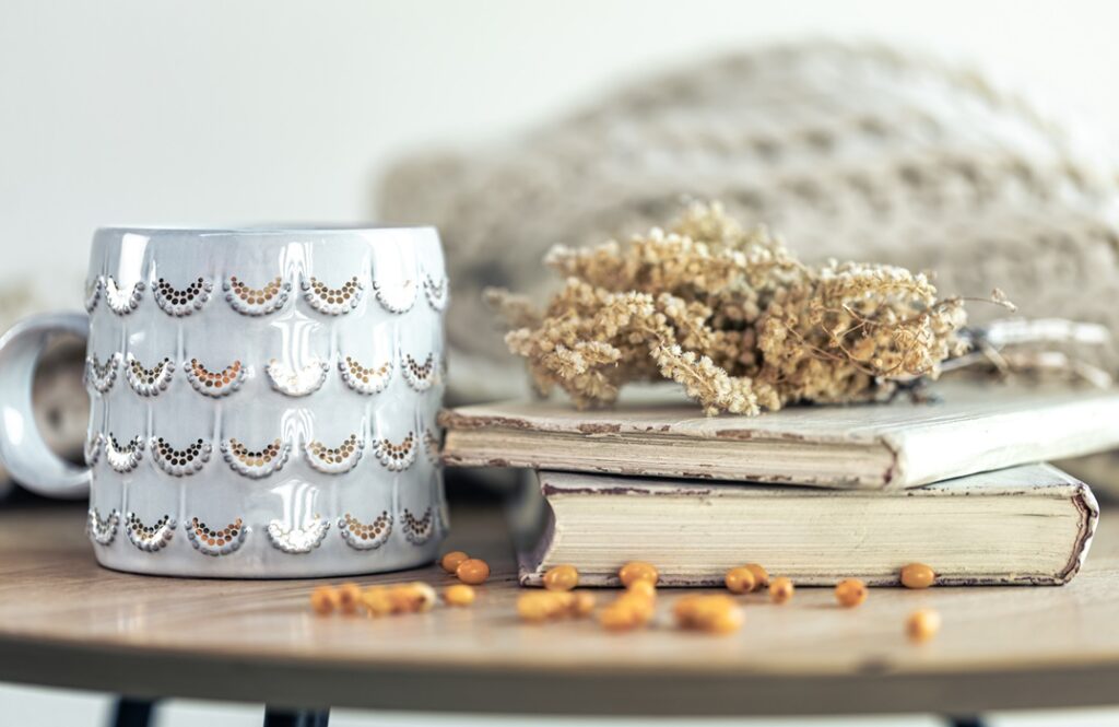 You probably already have a basket in your home. Put a blanket in it and some books or – depending on the season, some pumpkins or apples. Instant “Pinterest rustic chic”-vibe for only a couple of dollars. Our thrift store also has baskets for a couple of dollars max and they really add a natural, cozy vibe to your home for less.